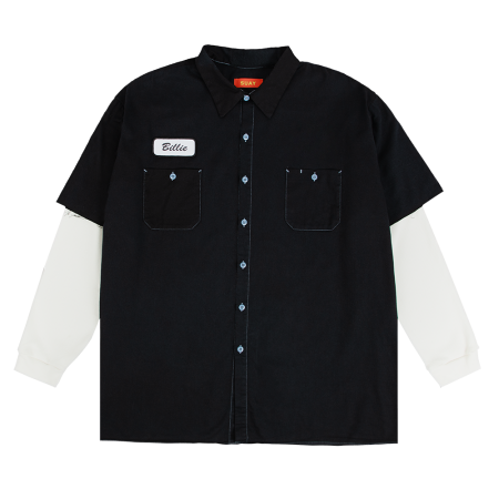 $60.00ONE-OF-A-KIND Billie Eilish remade crop mechanic thermal is an upcycled workwear shirt that has been lightly repaired and overdyed in the SUAY Community Dye Bath™. Oversized collared button-down shirt with thermal sleeves. Each of these unique workwear shirts will have slight variances. Reworked items support circularity and reduce a garment’s…