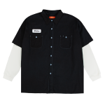 ONE-OF-A-KIND Billie Eilish remade crop mechanic thermal is an upcycled workwear shirt that has been lightly repaired and overdyed in the SUAY Community Dye Bath™. Oversized collared button-down shirt with thermal sleeves. Each of these unique workwear shirts will have slight variances. Reworked items support circularity and reduce a garment’s environmental impact.