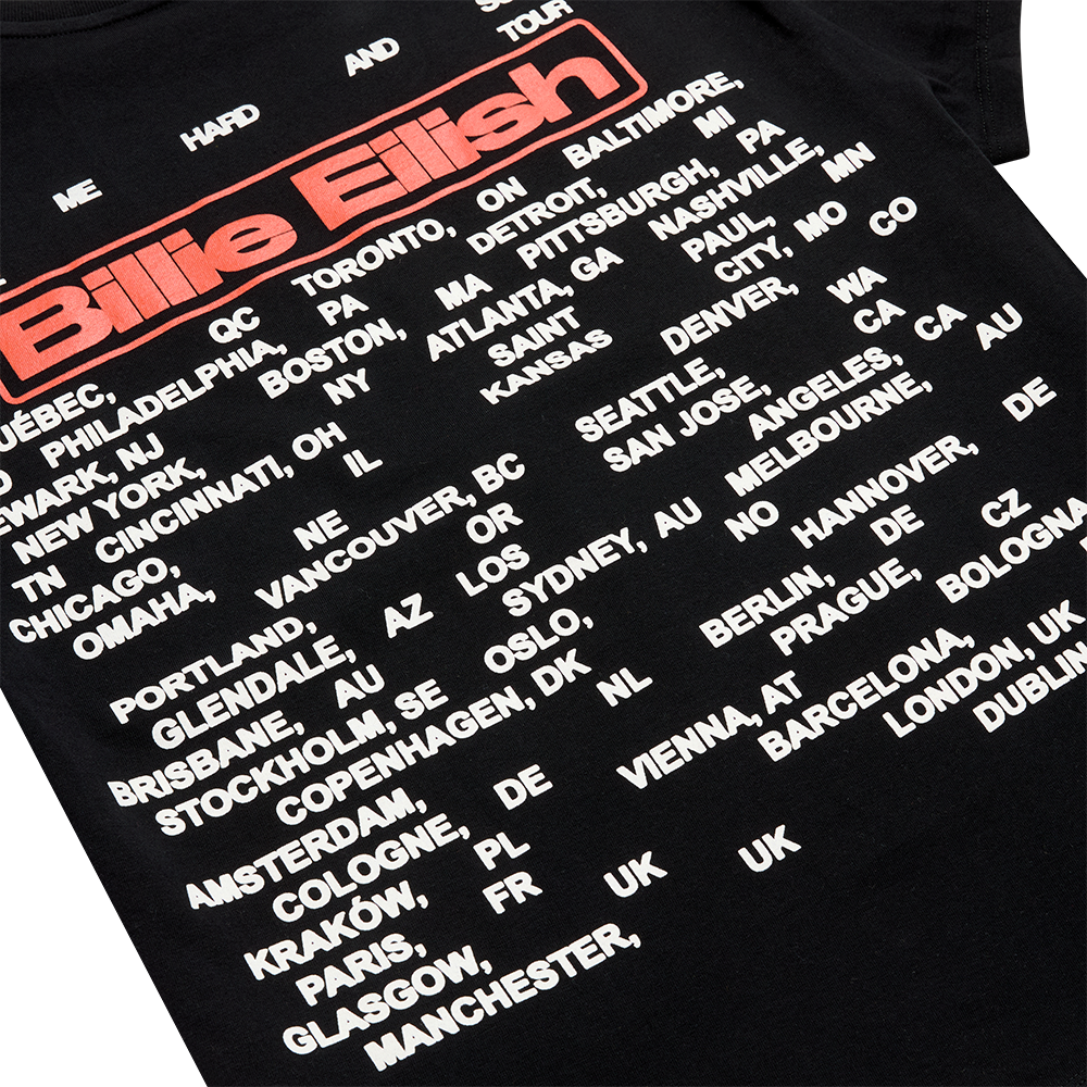 Black T-Shirt Featuring Tour Dates and Graphic from the “HIT ME HARD AND SOFT: THE TOUR.”