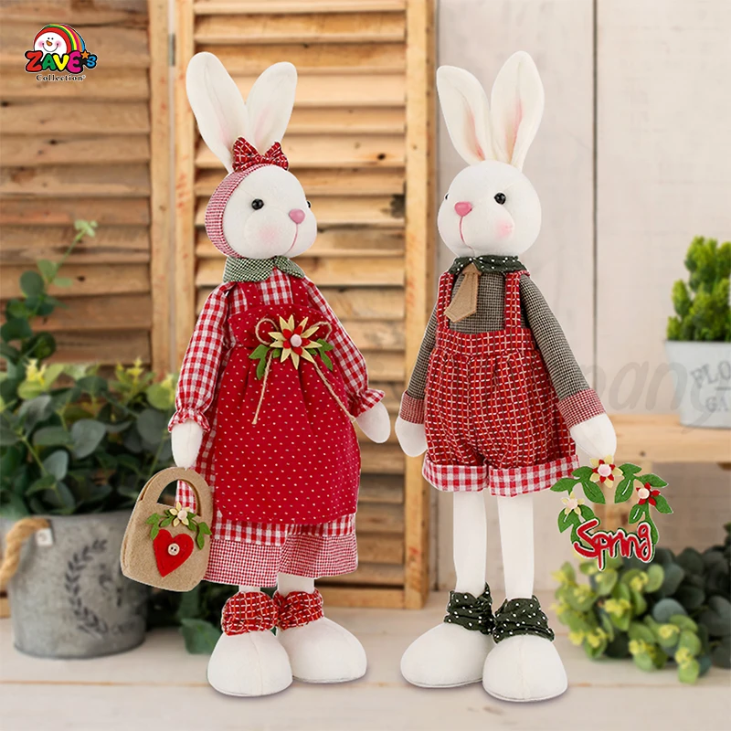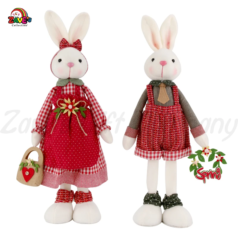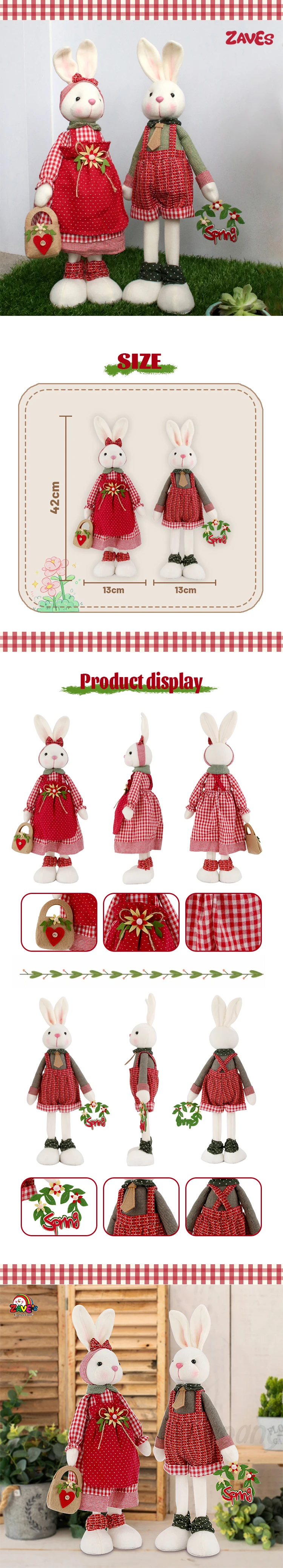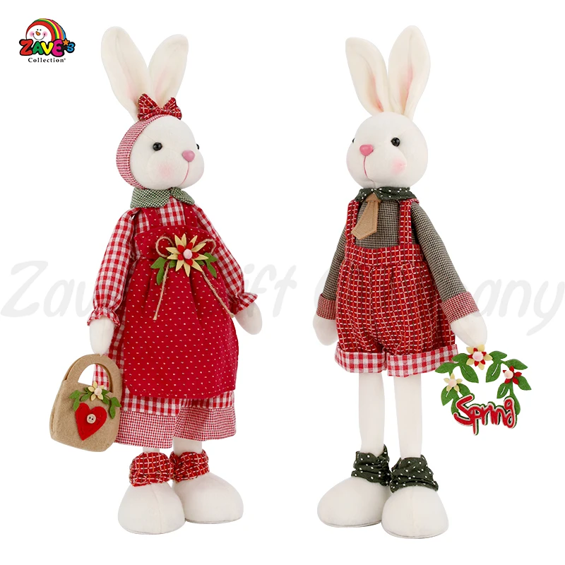 High Quality 42cm Tall Standing Bunny Plush Rabbit Doll Red Green Country Easter Holiday Comforter Decoration Wholesale