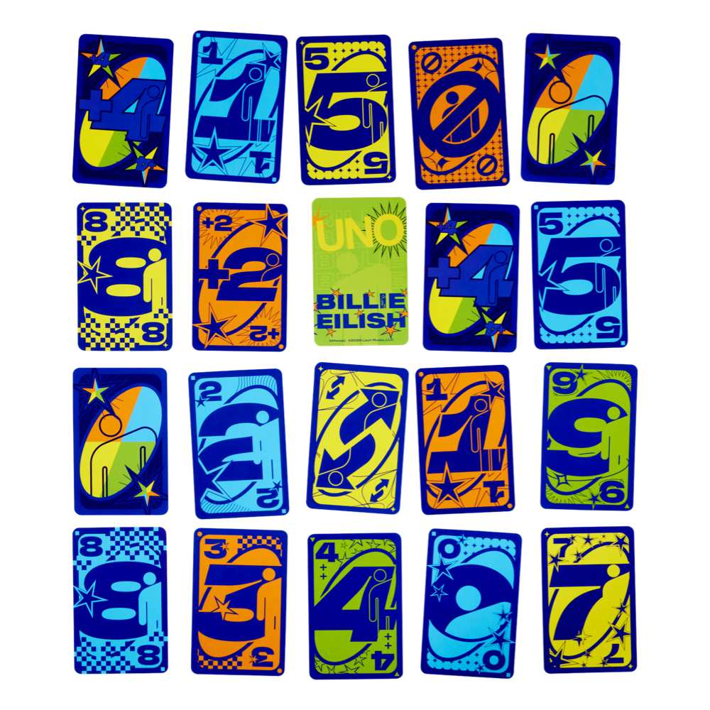 Billie designed this blohsh-filled UNO Canvas Billie Eilish deck featuring colors, symbols and numbers that showcase her artistic aesthetic, printed on 300-gram premium card stock. Deal yourself in for an epic game night, and don’t forget what you’re supposed to do when you get down to your last card.