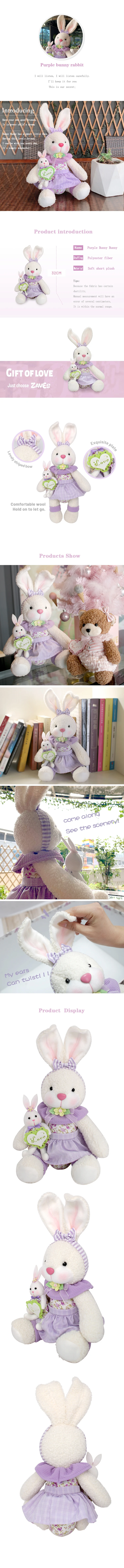 Zaves 23cm Purple Sitting Bunny Plush Toy Super Cute Home Ornament Sofa Decor Birthday Gift for Girlfriend Hot Stuffed Rabbit