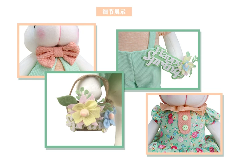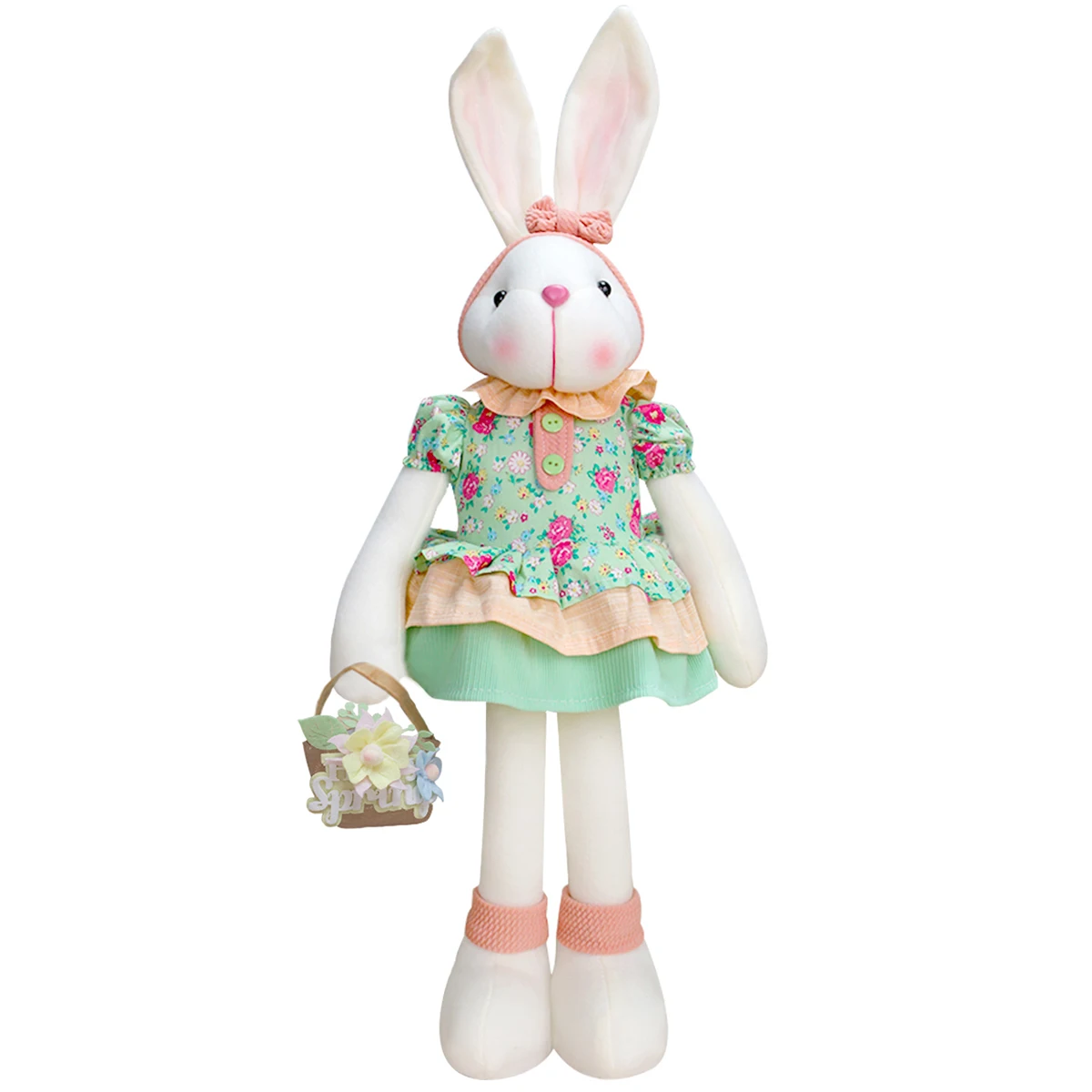 Zaves Easter Rabbit Toy Cute Bunny Home Life Home Decoration Spring Garden Style Series Holding Flower Basket Filled PP Cotton